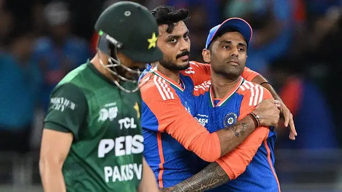 جواب میں بھارت نے ہدف کو صرف 15.5 اوورز میں 7 وکٹوں کے نقصان پر حاصل کر لیا۔ بھارتی کپتان سوریہ کمار یادو نے ناقابل شکست 47 رنز کی جارحانہ اننگز کھیلی، جبکہ شیوم دوبے نے 32 رنز کی مدد سے ٹیم کو فتح دلائی۔ یہ میچ کھیلاتی طور پر بھارت کی برتری کا مظہر تھا، لیکن سیاسی تناؤ کی وجہ سے یہ ایک تاریخی واقعہ بن گیا۔ ٹاس کے وقت ہی تنازعہ کی بنیاد پڑ گئی جب دونوں کپتانوں—سلمان آغا اور سوریہ کمار یادو—نے ہاتھ نہ ملایا۔ یہ روایت کرکٹ میں احترام کی علامت ہے، اگرچہ یہ کوئی لازمی قاعدہ نہیں۔